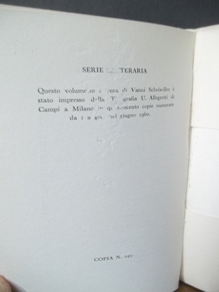 ALL'INSEGNA DEL PESCE D'ORO MILANO 1960 BROSSURA 12 X 9 PP. 62 TIRATURA LIMITATA - COPIA N.249 - OTTIME CONDIZIONI, SOLO USURA ALLA SCRITTA IN ULTIMA PAGINA COME DA FOTO.