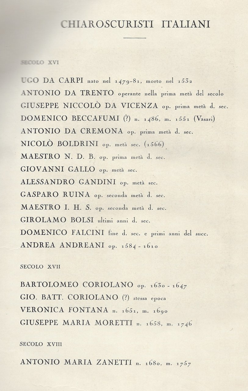 La xilografia a chiaroscuro italiana nei secoli XVI, XVII, e XVIII.