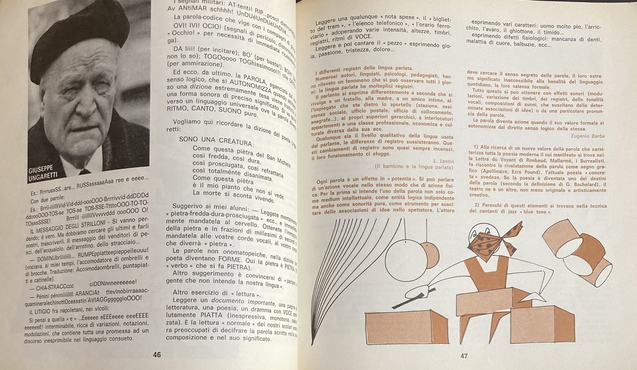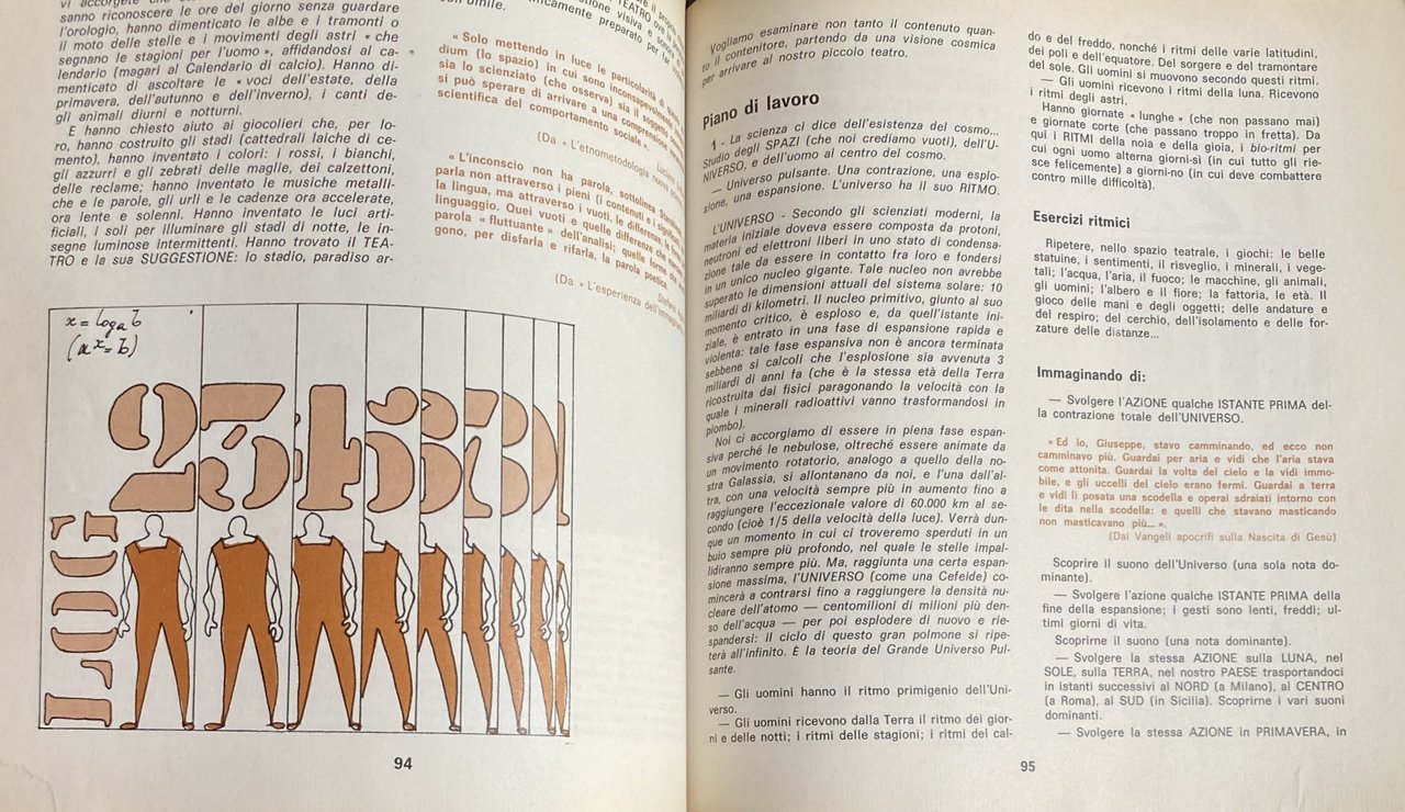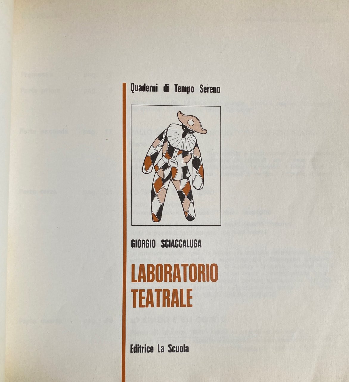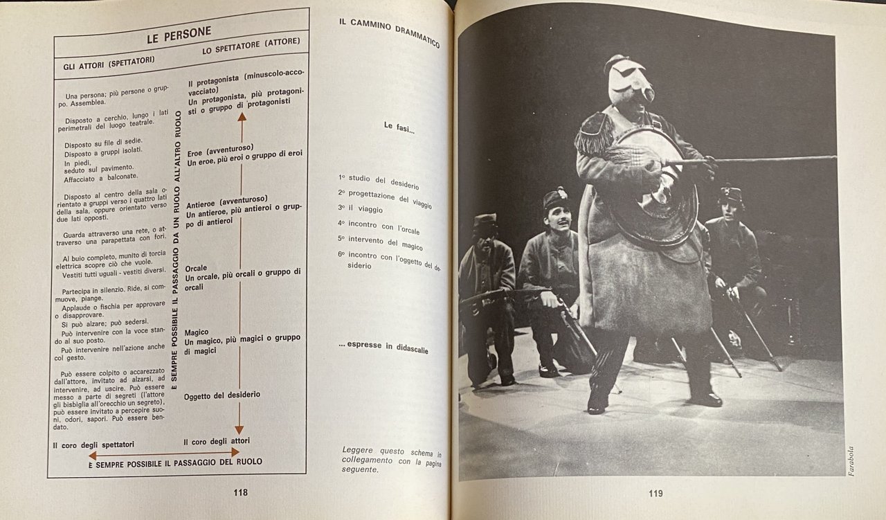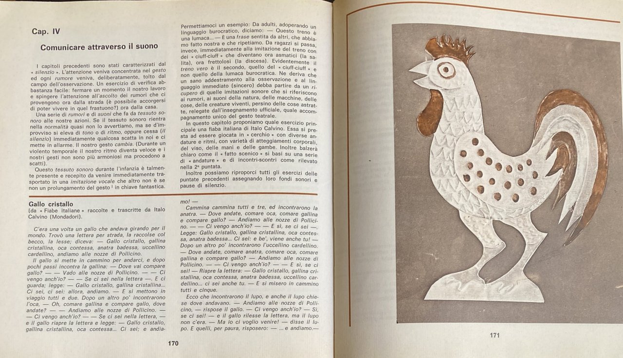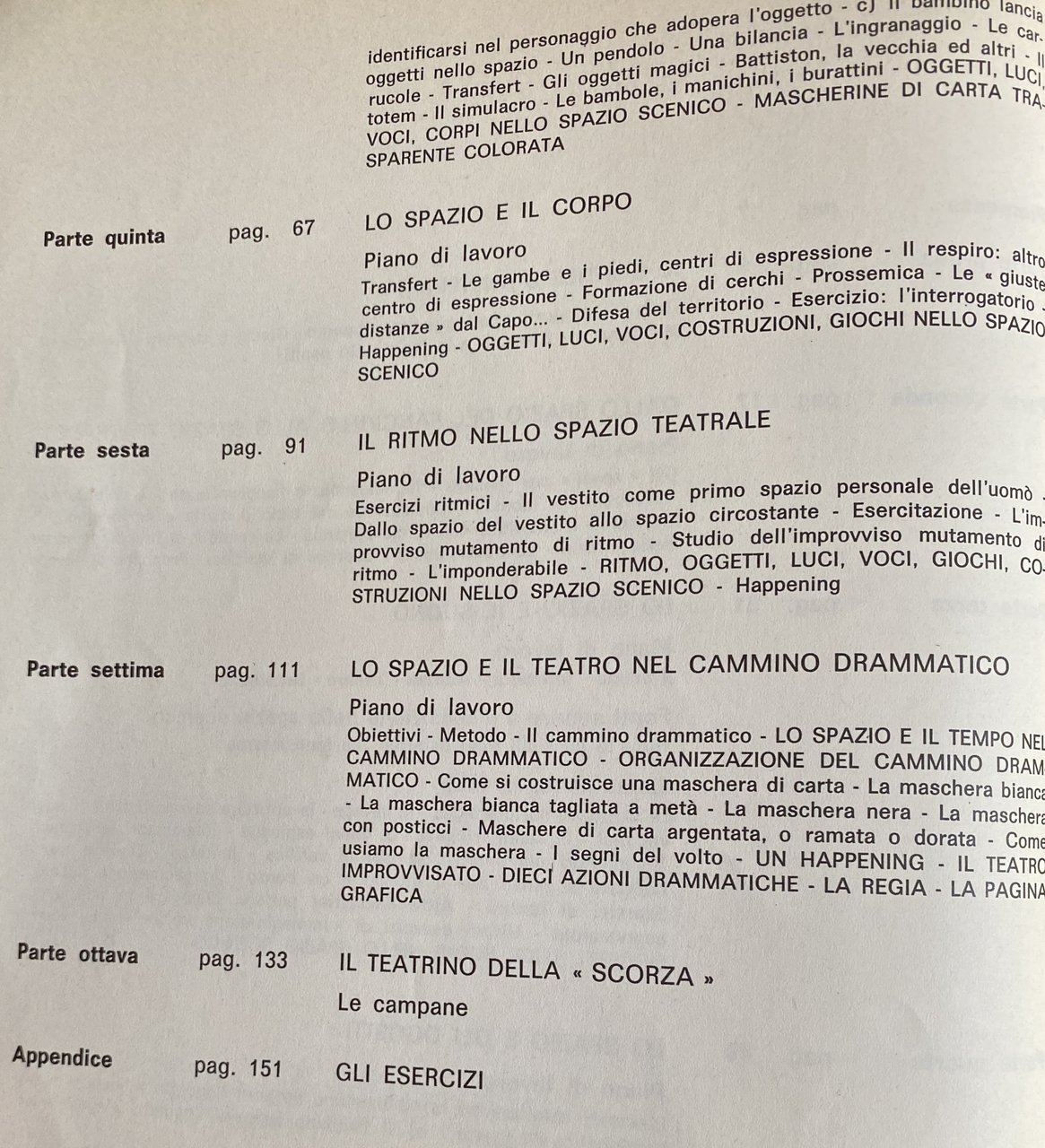 Soggetti: Scuola Attività extrascolastiche Animazione teatrale Teatro Bambini Gioco Recitazione Interpretazione Scuole elementari Laboratori teatrali Didattica Primaria Insegnamento Attività manuali creative Creatività Stimoli Collezionismo Libri illustrati Vintage rari fuori catalogo Scenografia Attori Mimo Mimica Personaggi Ruoli Marionette Spettacoli Commedie Laboratori Metodi didattici Anni Settanta Anni Ottanta Psicologia Ragazzi Drammatizzazioni Bibliografia Riferimento Educazione Formazione Crescita Apprendimento Pedagogia Teorie pedagogiche Sviluppo psichico Socialità Socializzazione Relazioni Rappresentazioni sceniche Emanuele Luzzati Tonino Conte Fanciulli Attività ricreative Palcoscenico Esercizi Prove Guide Manuali Finzione Messinscena Maestri Insegnanti Docenti Registi Testi Letteratura Drammaturgia Danza Movimenti Corpo Lavori Identificazione Catarsi Spazio Suono Tempo libero Verifiche Prove Costruzioni Parlare Dialogare Esprimersi Oggetti Immaginazione Fantasia Voce Esercitazioni Magico Orcale Suoni Timbro Lettura Ascolto Gruppo Maschera Bambole Simulacri pendolo Bilancia Burattini Prossemica Cerchio Gambe Piedi Interrogatorio Mani Happening Tecniche Carta Luci Improvvisazione Regia Campane Trucchi Altro Rappresentatività Giungla Cortile Lotta Azione Gallina Arte Musica Psicodramma Linguaggio Comunicazione Italo Calvino Shakespeare Comunicare Animali Fiabe Favole Scrittura Ostacoli Espressione Espressività Doppiaggio Antieroe Silenzio Risata Pianto Codici Lingua Dottrina Tecnica Psicomotoria Eugenio Barba Peter Brook Ferdinando Taviani Lorenzo Arruga Arnheim Grotowski Beck Marshall McLuhan Anderson Lapierre Lentin Gaudenzio Norbis Maria Ludovica Varvelli Elisa Mantovani Angelo Paviolo Julius Fast Piero Angela Wladimir Propp Gianni Rodari Silvio Ceccato Serghiei Obraszov Merleau-Ponty Pierre Bour Lea Vergine Peter Caterina Kolosimo Bruno Munari Albi didattici Gino Di Rosa Teatrinate Da collezione School Extracurricular activities Theatrical animation Theater Children Game Acting Interpretation Elementary schools Theatrical workshops Primary Teaching Creative manual activities Creativity Stimuli Collecting Rare illustrated books out of print Scenography Actors Mime Mimicry Characters Roles Puppets Shows Comedies Workshops Teaching methods 1970s 1980s Psychology Dramatizations Bibliography Reference Education Training Growth Learning Pedagogy Pedagogical theories Psychological development Sociality Socialization Relationships Scenic representations Recreational activities Stage Exercises Rehearsals Guides Manuals Fiction Staging Masters Teachers Directors Texts Literature Dramaturgy Dance Movements Body Works Identification Catharsis Space Sound Free time Tests Rehearsals Constructions Speaking Dialogue Expressing Objects Imagination Fantasy Voice Exercises Magic Sounds Timbre Reading Listening Group Mask Dolls Simulacrums Pendulum Scales Proxemics Circle Legs Feet Interrogation Hands Techniques Paper Lights Improvisation Directing Bells Tricks Representativeness Jungle Courtyard Fight Action Hen Music Psychodrama Language Communication Communicating Animals Fairy Tales Fables Writing Obstacles Expression Expression Dubbing Antihero Silence Laughter Crying Codes Language Doctrine Technique Psychomotor Collectibles