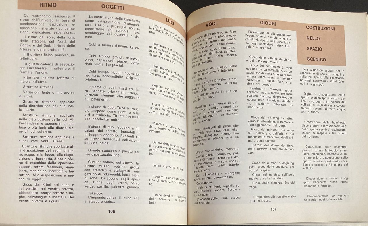 - Scuola, Attività extrascolastiche, Teatro, Bambini, Gioco, Recitazione, Interpretazione, Scuole elementari, Laboratori teatrali, Didattica, Scuola Primaria, Insegnamento, Attività manuali, Attività creative, Collezionismo, Libri illustrati, Libri Vintage, Libri rari, Libri fuori catalogo, Scenografia, Mimica, Burattini, Marionette, Laboratori teatali, Metodi didattici, Anni Settanta, Psicologia, Ragazzi, Drammatizzazione, Psicodramma, Pedagogia, Educazione, Formazione, Apprendimento, Teorie pedagogiche, Sviluppo psichico, Attività ricreative, Palcosenico, Esercizi, Guide, Manuali, Finzione, Messinscena, Maestri, Insegnanti, Docenti