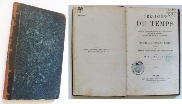 *LABROSSE M. F. Prevision du temps. Moyens de prevoir la direction et la force du vent, a l'aide du barometre, du thermometre et du psychrometre. Manuel a l'usage des marins precede de notions sur les vents reguliers, vents variables et cyclones. Previsioni del tempo. Manuale ad uso dei marinai, con nozioni sui venti regolari, venti variabili e cicloni.