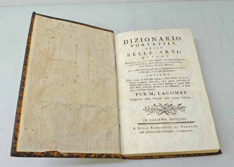 LACOMBE,DIZIONARIO PORTATILE DELLE BELLE ARTI,1781 Remondini,Bassano[storia arte