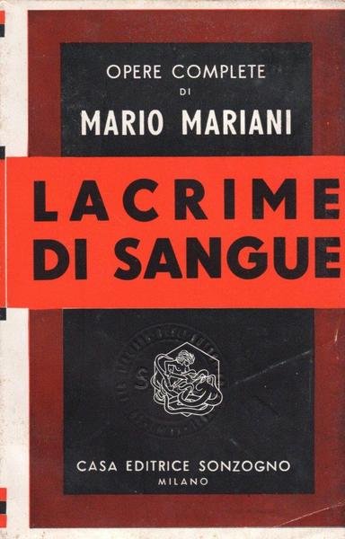 Lacrime di sangue, edizione febbraio 1948, formato 12 x 18. <BR>Copertina morbida di colore nero e rosso con titoli in bianco e nero al piatto anteriore e in nero sul dorso.<BR>Buone condizioni.