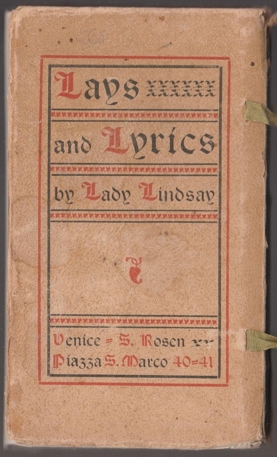 LADY LINDSAY LAYS AND LYRICS VENEZIA S. ROSEN 1907 L4703 CONDIZIONI ACCETTABILI, COPERTINA RIGIDA STACCATA DAL LIBRO, DORSO ASSENTE, TAGLI IRREGOLARI, INTERNO IN BUONO STATO N. PAG. 127 CM. 17 X 10,5