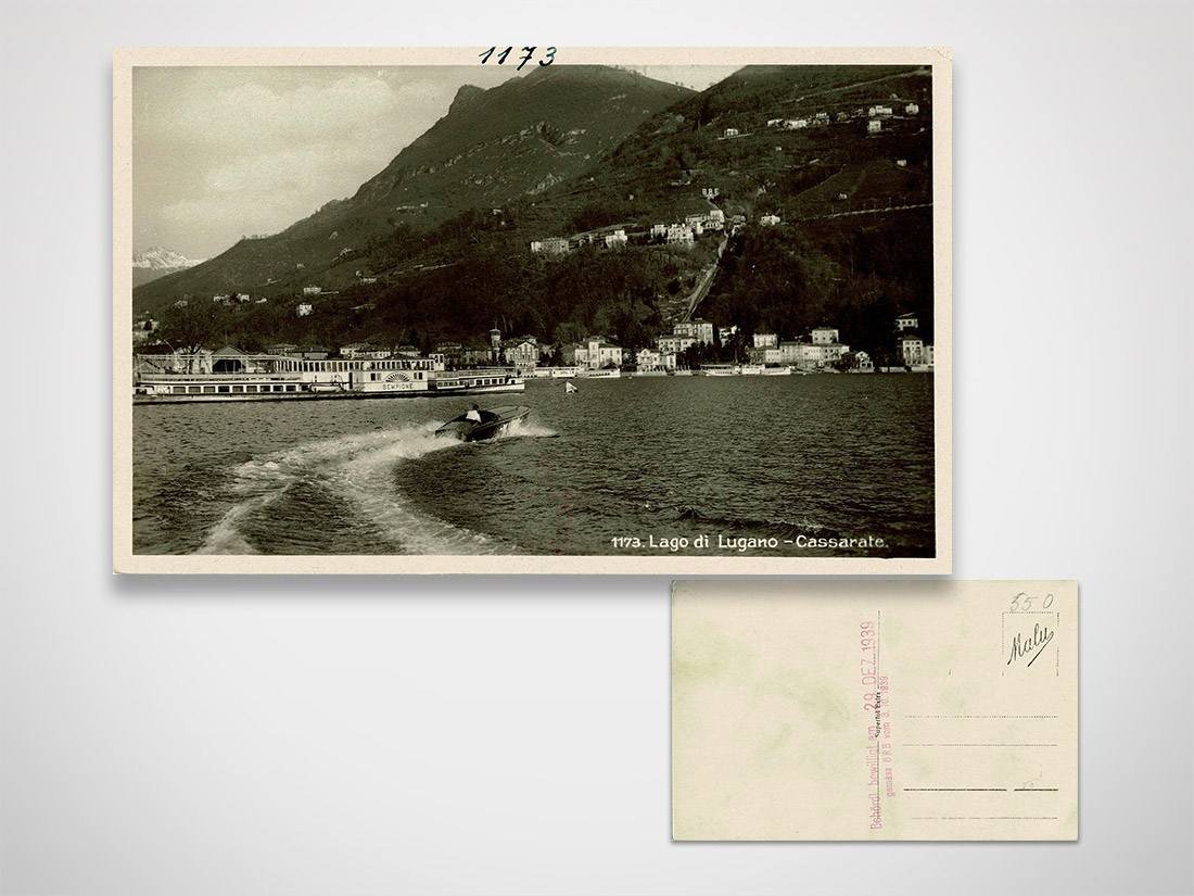 Cartolina Lago di Lugano - Cassarate, timbro in originale di approvazione della Confederazione, non viaggiata Dimensioni: 9 x 14 cm