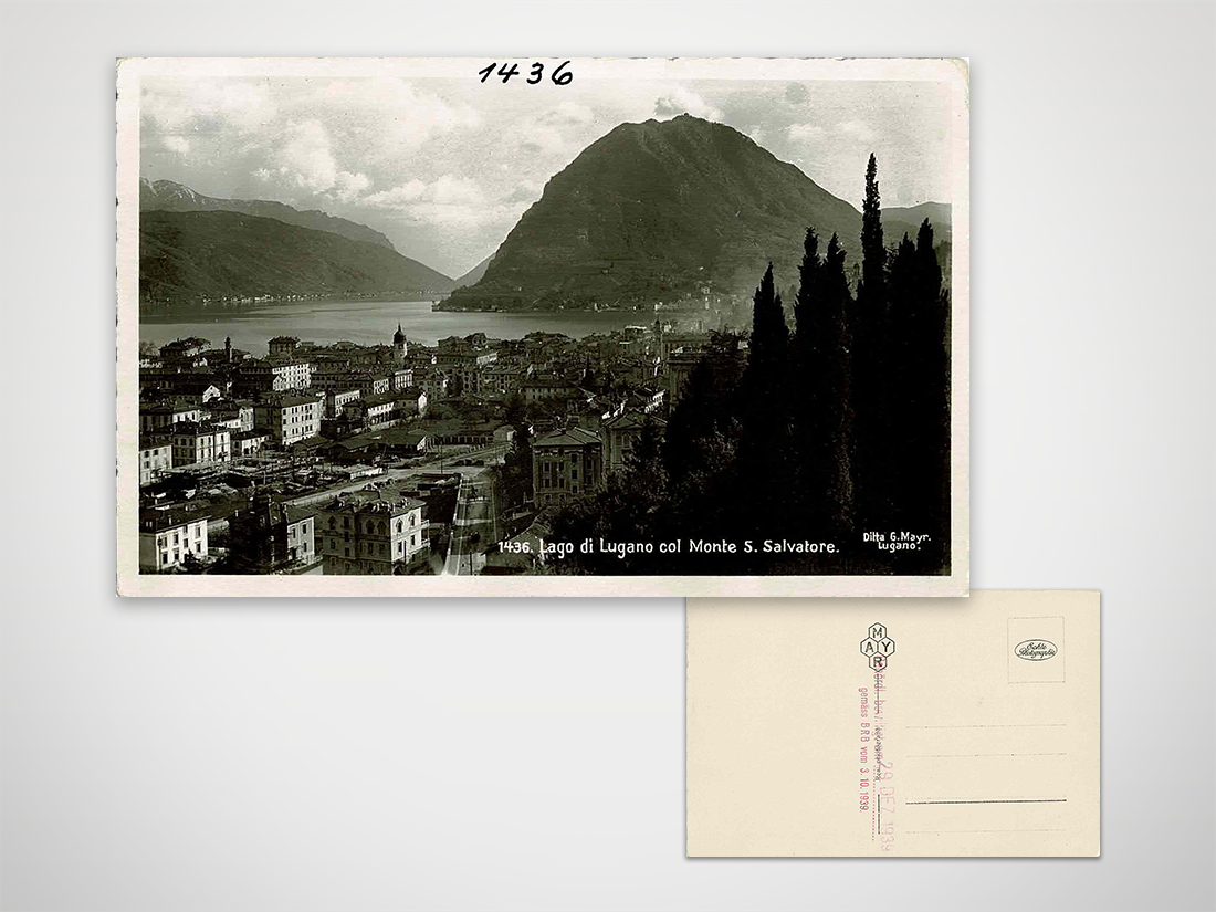 Cartolina Lago di Lugano - Monte S.Salvatore, timbro in originale di approvazione della Confederazione, non viaggiata Dimensioni: 9,2 x 14 cm