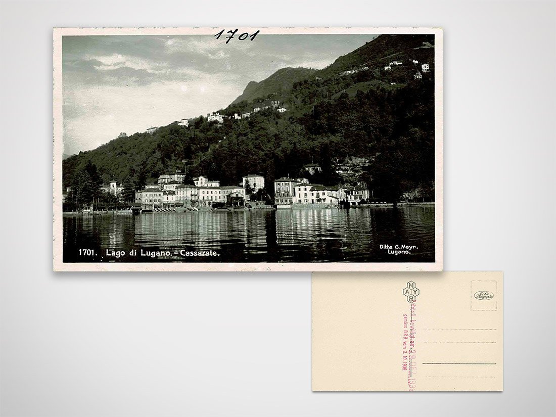 Cartolina Lago di Lugano Cassarate, timbro in originale di approvazione della Confederazione, non viaggiata Dimensioni: 9 x 14 cm