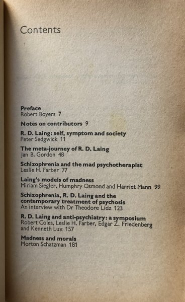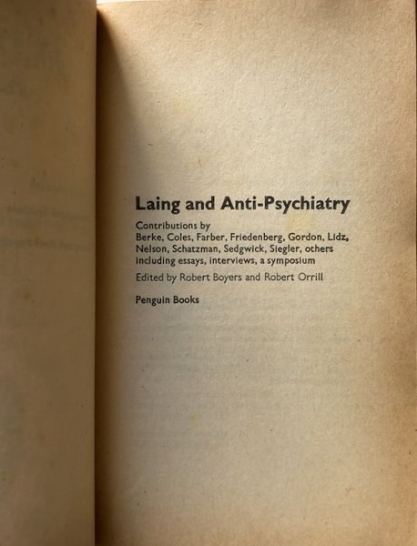 Robert Coles, Leslie H. Farber, Edgar Z. Friedenberg; R.D. Laing and anti-psychiatry: a symposium.