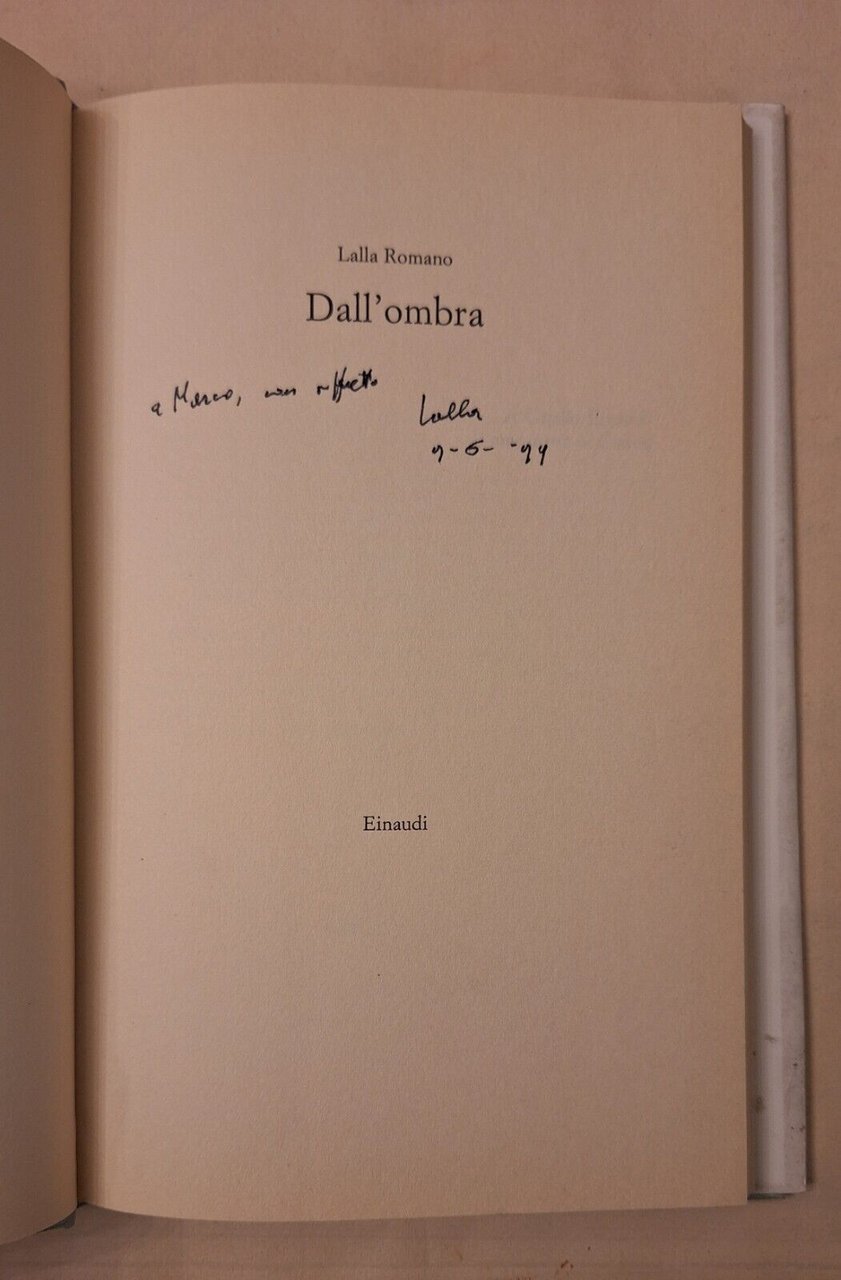 LALLA ROMANO DALL'OMBRA EINAUDI 1999 AUTOGRAFATO