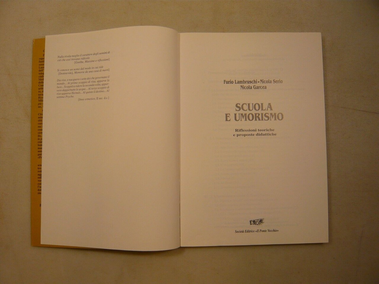 Furio Lambruschi, Nicola Serio, Nicola GarceaSCUOLA E UMORISMORiflessioni teoriche e proposte didatticheIl Ponte Vecchio, Cesena, 1998Brossura, 24x17cm, pp. 141Con immagini in bianco e neroPeso:310g