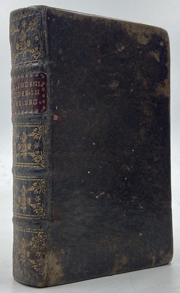Legatura coeva in piena pelle con dorso a cinque nervi, fregi dorati e titoli dorati su tassello rosso; 8vo cm10.5x18, pp (32) 575 (1). Segnatura: +8 ++8 A-Z8 Aa-Nn8. Legatura con qualche segno d’uso e piccoli danni d’insetto sul piatto posteriore, carte piuttosto brunite e qualche gora marginale; fogli di sguardia forse posteriori, sul primo una nota di mano antica circa l’edizione veneziana del 1741. Esemplare un poco vissuto ma genuino e ben completo, presenti anche le due carte bianche alla fine della seconda segnatura. Apparsa inizialmente a Parigi nel 1714, quest’opera attirò l’attenzione della censura ecclesiastica per la sua posizione di razionalismo moderato alla ricerca di una “regolata devozione”: la verità della rivelazione e la necessità della tradizione, indispensabili per la teologia, sono da accompagnare con la ragione ed il libero esame tanto nello studio della natura quanto nella storia e nella filologia biblica; il terzo libro è dedicato alla confutazione delle critiche di Jean Le Clerc ad Agostino. (Vedi Imbruglia, DBI) ENGLISH: Contemporary full calf, octavo. A complete but quite worn copy, some damage to binding, pages quite darkened, especially on the first two signatures, and with some water stain to edges. Early edition of this work in which Muratori advocates for moderation and balance between religion and reason.