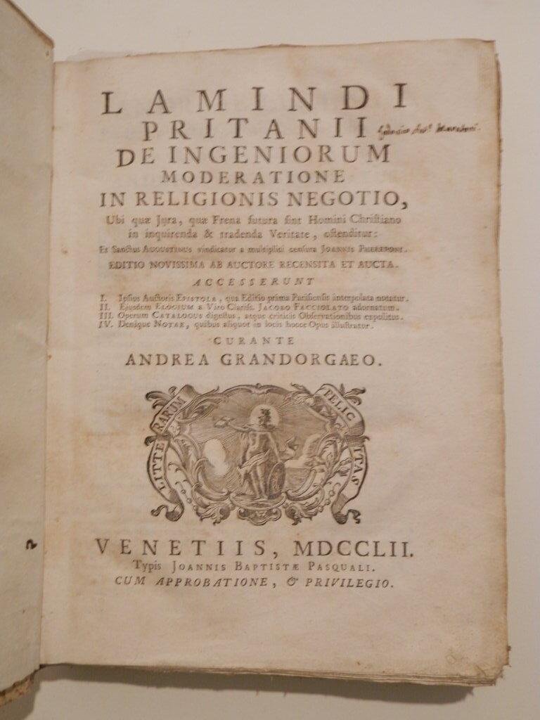 Lamindi Pritanii De ingeniorum moderatione in religionis negotio, ubi quae jura, quae frena futura sint homini christiano in inquirenda & tradenda veritate