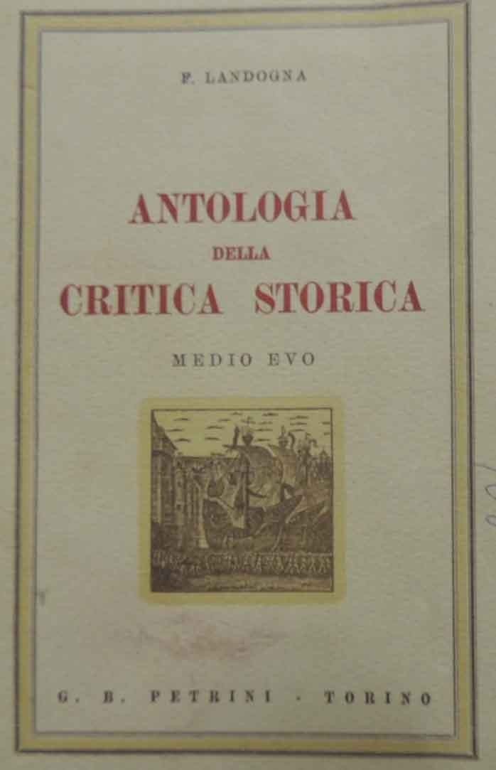 Franco Landogna, Antologia della critica storica. Parte prima: Medio Evo. In appendice: Guida Bibliografica sui principali problemi di critica storica, G. B. Petrini, Torino 1954, decima ed. Accresciuta, pp. 590, cm 21, br. ed. Tracce d’uso, un segnetto di biro alla prima di copertina, alcune sottolineature e annotazioni a lapis, leggera brunitura della carta, ma nel complesso copia in condizioni ancora in discrete condizioni.