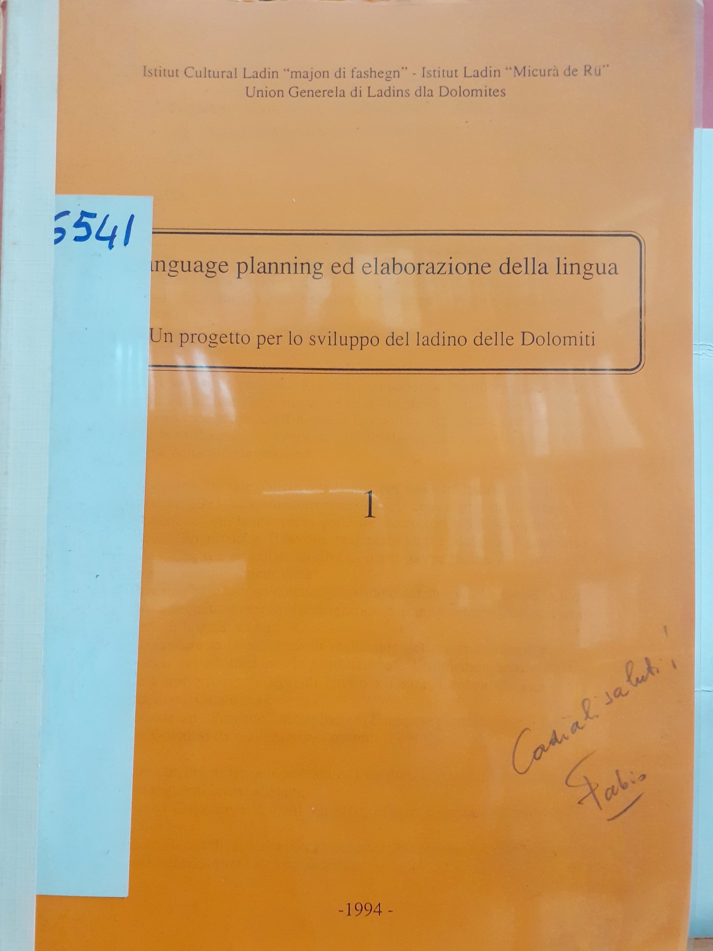 LANGUAGE PLANNING ED ELABORAZIONE DELLA LINGUA. UN PROGETTO PER LO SVILUPPO DEL LADINO DELLE DOLOMITI., Institut Cultural Ladin "majon di fashegn"- Istitut Ladin "Micurà de Ru. Union Generela di Ladins dla Dolomites.