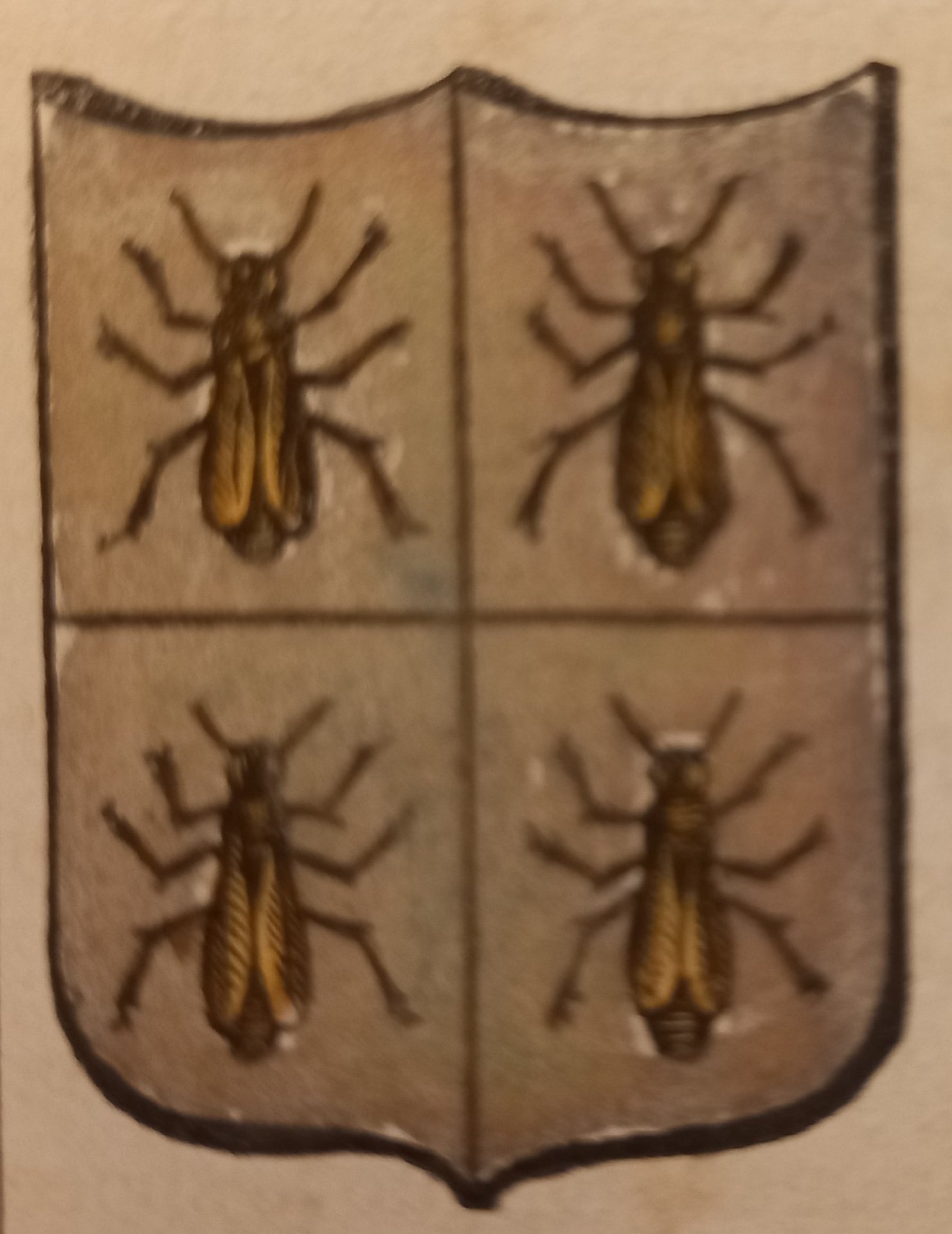Piccolo stemma comunale colorato a mano d’epoca (cm. 3,8 x 3,2 ca.). Stralcio dal Dizionario Corografico illustrato dell’Italia, edito a Milano nel 1868. Ogni stemma di questa raccolta è inserito in una o più pagine di testo con la descrizione della località, notizie storico - geografiche e statistiche (numero degli abitanti e degli elettori, guarnigioni della Guardia Nazionale, ecc.). Spesso il testo è redatto da studiosi locali o dai sindaci, con maggiori, interessanti notizie.