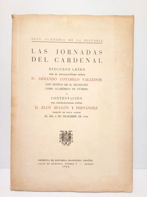 Las jornadas del Cardenal (Discurso de ingreso en la R. A, de la Historia leído el 6 de Diciembre de 1944. CONTESTA: Eloy Bullón y Fernández)