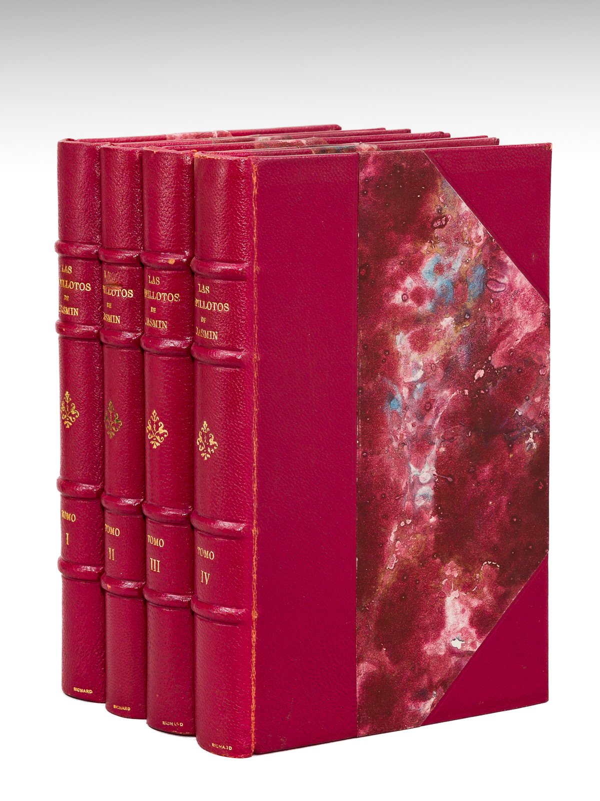 4 vol. in-8 reliure postérieure demi-chagrin à coins bordeaux, dos à 4 nerfs orné, couvertures conservées, reliure signée de Richard, Imprimerio de Prosper Noubel, Agen, Tome I : 1843, xxiv-355 pp. ; Tome II (troisième édition) : 1858, 400 pp. ; Tome III : 1851, LIX-263 pp. ; Tome IV : XX-412 pp. Rare ensemble bien complet des oeuvres de Jasmin, dans une belle reliure uniforme signée, en bon état (qq. rouss., ex-libris en garde), avec les 4 couvertures d'origine conservée.