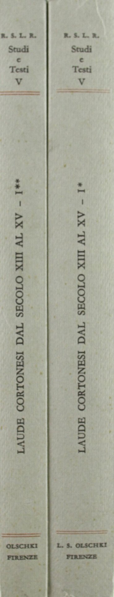 Varanini, G. Laude cortonesi dal secolo XIII al XV (Vol. 1). , Olschki 1981, 540 Primo volume in due tomi, tracce d'uso al dorso (65839)