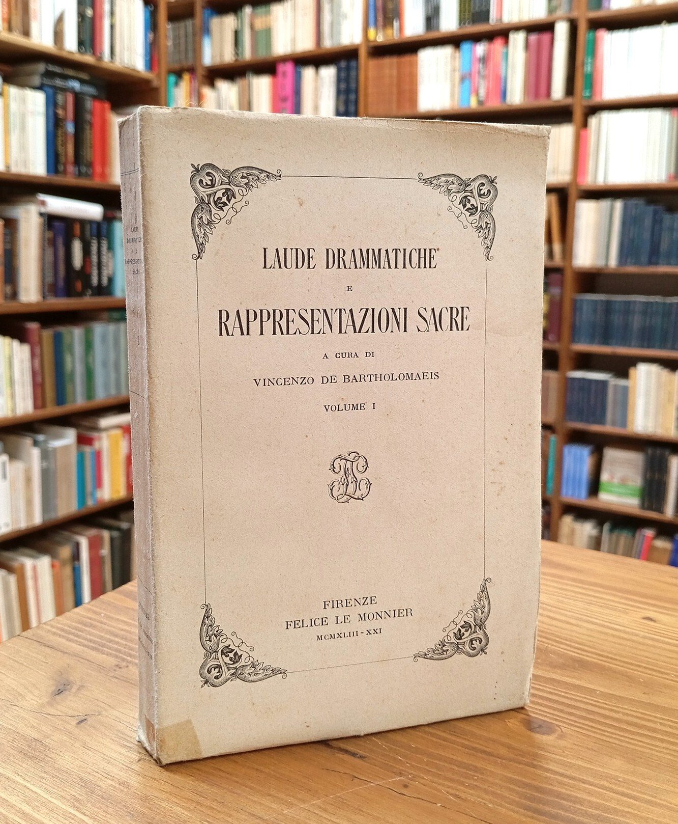 Primo dei tre volumi dell'opera, in sé completo per quanto concerne l'Umbria - Brossura editoriale di xx-473 pagine. Conserva al suo interno il volantino promozionale della "Biblioteca Nazionale Le Monnier". Ordinari segni del tempo, nel complesso esemplare molto ben conservato di una preziosa antologia lirica -- La presente raccolta offre un saggio delle varie forme del dramma religioso in Umbria nelle diverse epoche, sin dalle forme più arcaiche e di più semplice inscenatura; accanto a rappresentazioni classiche figurano molte inedite.