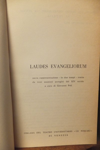 LAUDES EVANGELIORUM SACRA RAPPRESENTAZIONE IN DUE TEMPI TRATTA DA TESTI ANONIMI PERUGINI DEL XIV SECOLO