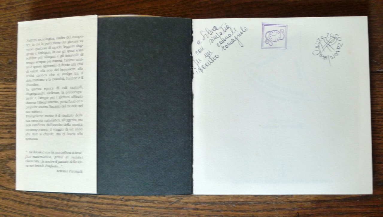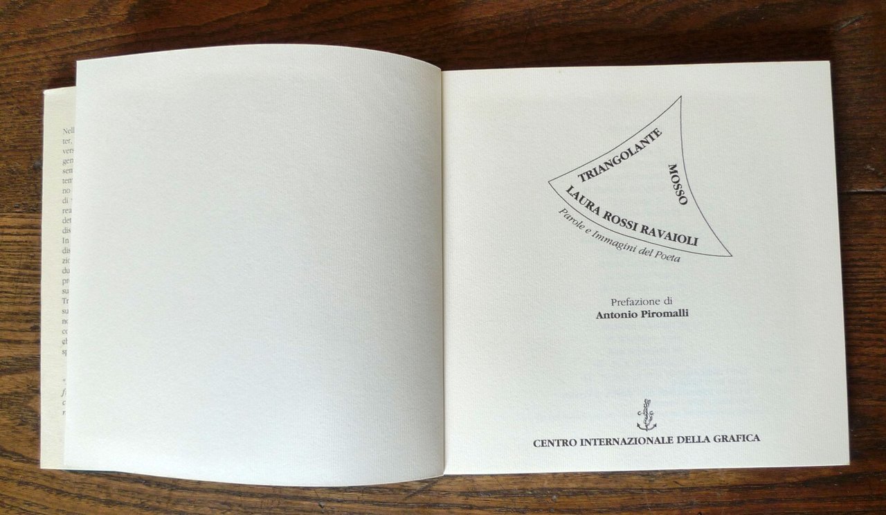 Laura Rossi Ravaioli,TRIANGOLANTE MOSSO.Parole e immagini del Poeta.Prefazione di Antonio Piromalli.Centro Internazionale della Grafica di Venezia,Venezia 1993,tiratura di 600 esemplari,brossura con sovraccoperta, 16x16 cm., pp.82,illustrazioni in bianco e nero,peso: g.350cod.9483CONDIZIONI DEL LIBRO: ottime,macchie in copertina,dedica all'occhiello