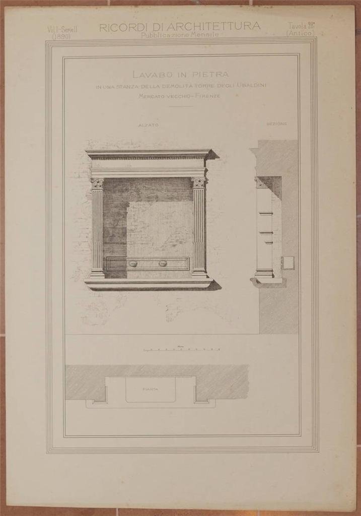 LAVABO IN PIETRA IN UNA STANZA DELLA DEMOLITA TORRE DEGLI UBALDINI MERCATO VECCHIO - FIRENZE