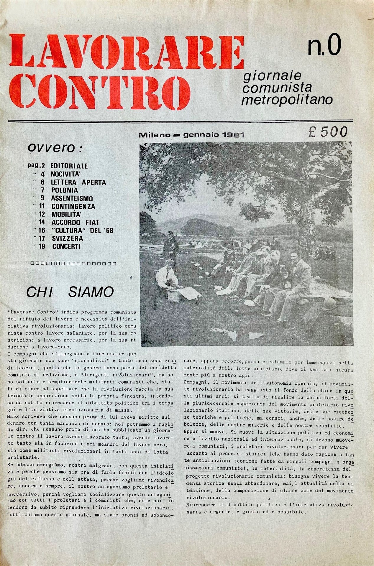 Lavorare contro. Giornale comunista metropolitano. N. 0 Milano – Gennaio 1981