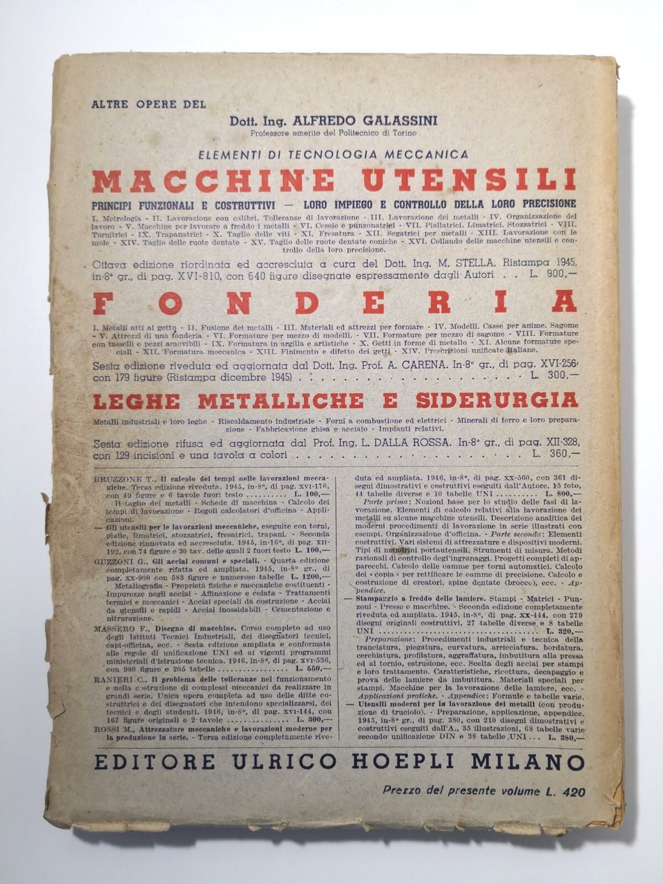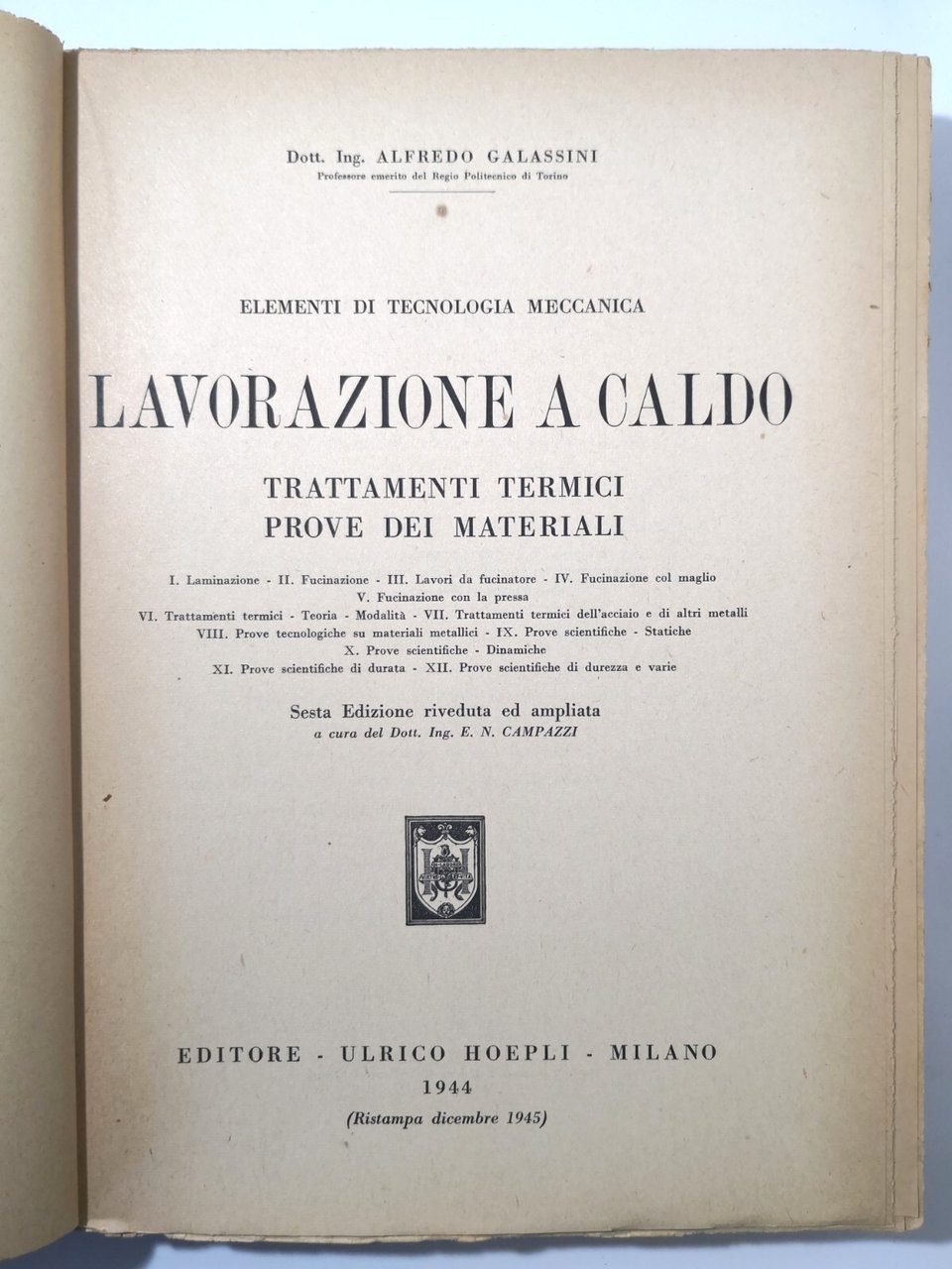 LAVORAZIONE A CALDO di Alfredo Galassini 1945 Hoepli Libro Manuale tecnologia