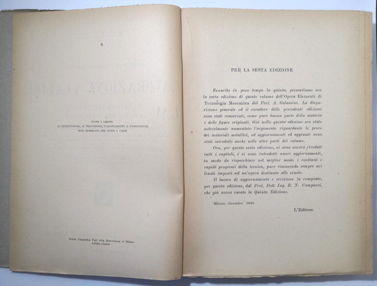 Elementi di Tecnologia Meccanica. LAVORAZIONE A CALDO di Alfredo Galassini. Trattamenti Termici. Prove dei Materiali.
