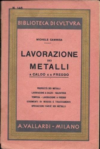 in 16°, pp. 163, 8 nn. di catal., bross. edit. ill. Proprietà dei metalli, lavorazione a caldo, saldatura, tempera, lavorazione a freddo, stromenti di misura e tracciamenti, operazioni varie sui metalli, con 133 figure in nero ed alcune tabelle. In ottimo stato. 367/36