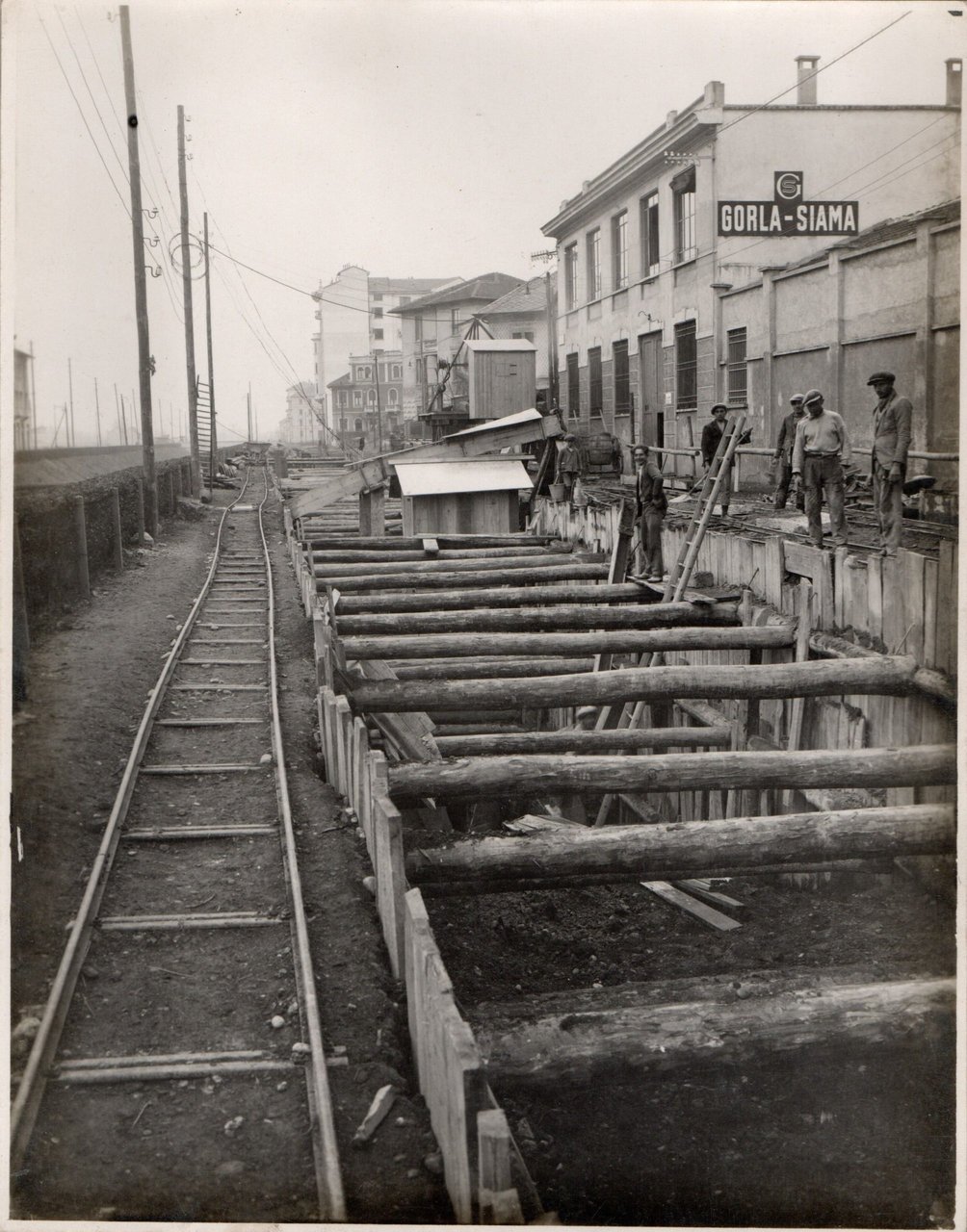Lavori di costruzione dei collettori della rete fognaria a Gorla
