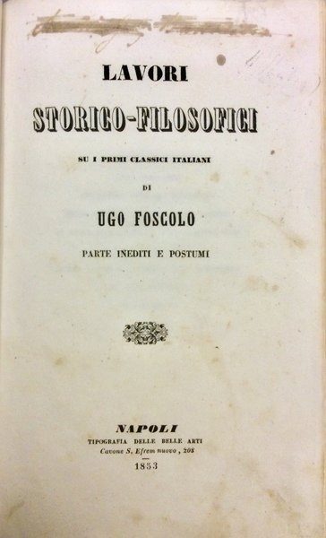 LAVORI STORICO-FILOSOFICI SU I PRIMI CLASSICI ITALIANI. - Parte inediti e postumi.