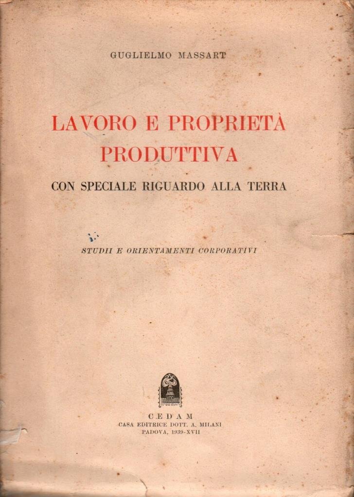 "Lavoro e propriet‡ produttiva con uno speciale riguardo alla Terra", edizione 1939, pp. 426, formato 18 x 25,5.