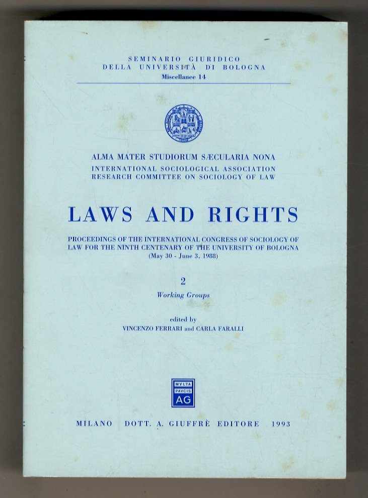 Laws and rights. Proceedings of the International Congress of Sociology of Law for the ninth centenary of the University of Bologna. (May 30 - June 3, 1988). Panels and Sessions. Working Groups.