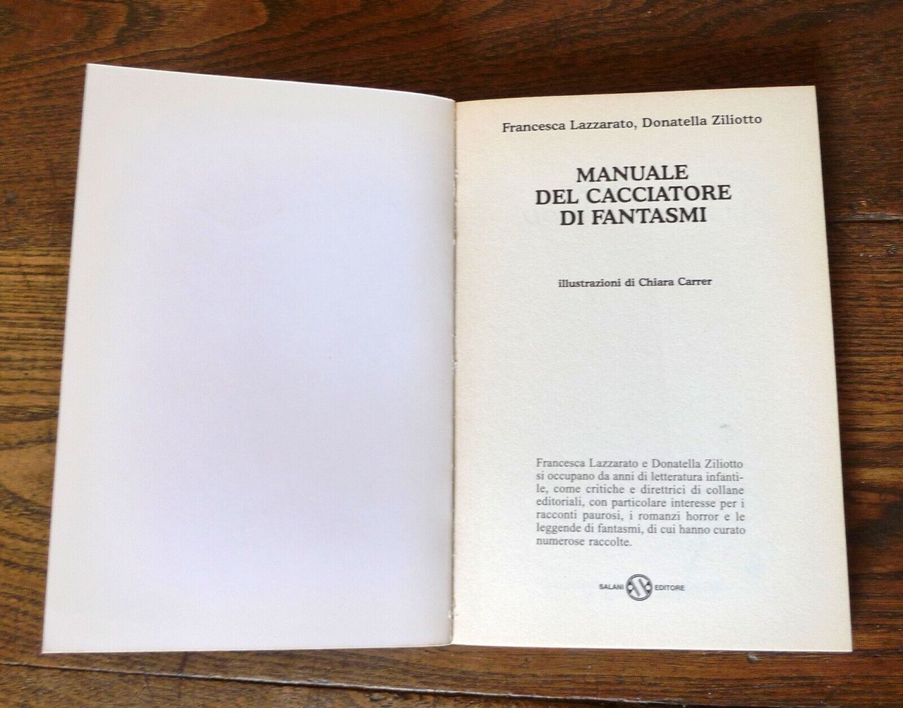 Francesca Lazzarato, Donatella Ziliotto,MANUALE DEL CACCIATORE DI FANTASMI.Illustrazioni di Chiara Carrer.Adriano Salani Editore, Firenze 1996,brossura, 18,5x12,5 cm., pp.115,illustrazioni in bianco e nero,ISBN: 88-7782-499-9,peso: g.200