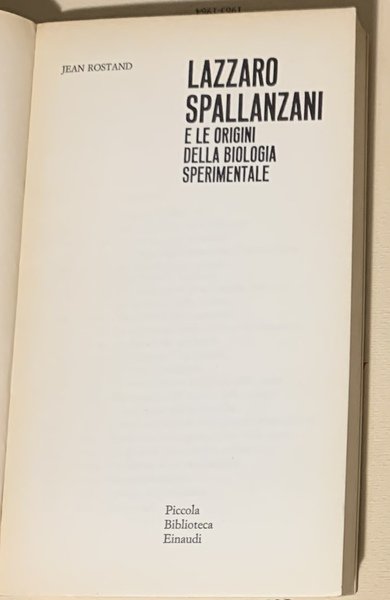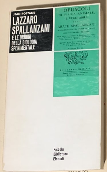 18,1x10,5 cm; 206, (2) pp. Brossura editoriale illustrata con edizione di un'opera di Spallanzani. Prima edizione di questa accurata monografia dedicata al grande biologo speimentale di Scandiano (Reggio Emilia) che fu tra i massimi esponenti del movimento scientifico italiano settecentesco. BUON ESEMPLARE.