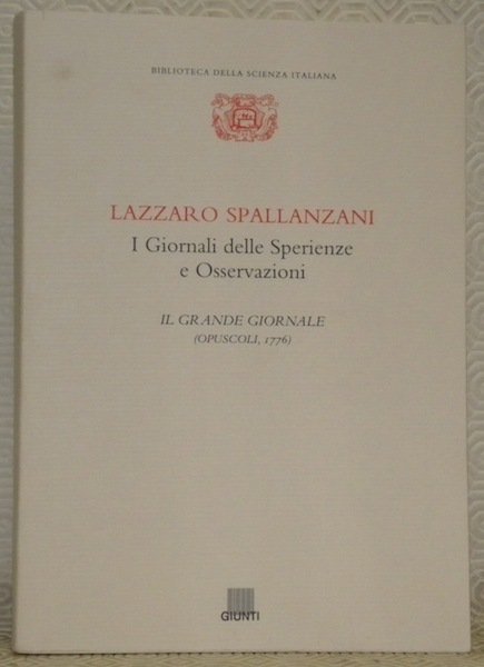 Lazzaro Spallanzani. I Giornali delle Sperienze e Osservazioni. I grande giornale (Opuscoli, 1776). Biblioteca della scienza italiana, I.