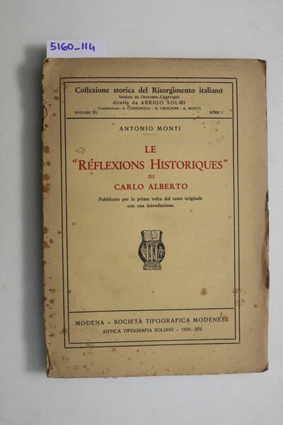 Le - Reflexions Historiques - di Carlo Alberto.Pubblicate per la prima volta dal testo originale con una introduzione.