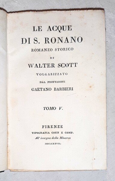 Le acque di S. Ronano. Romanzo storico di Walter Scott volgarizzato dal Professore Gaetano Barbieri. Tomo I [-V].