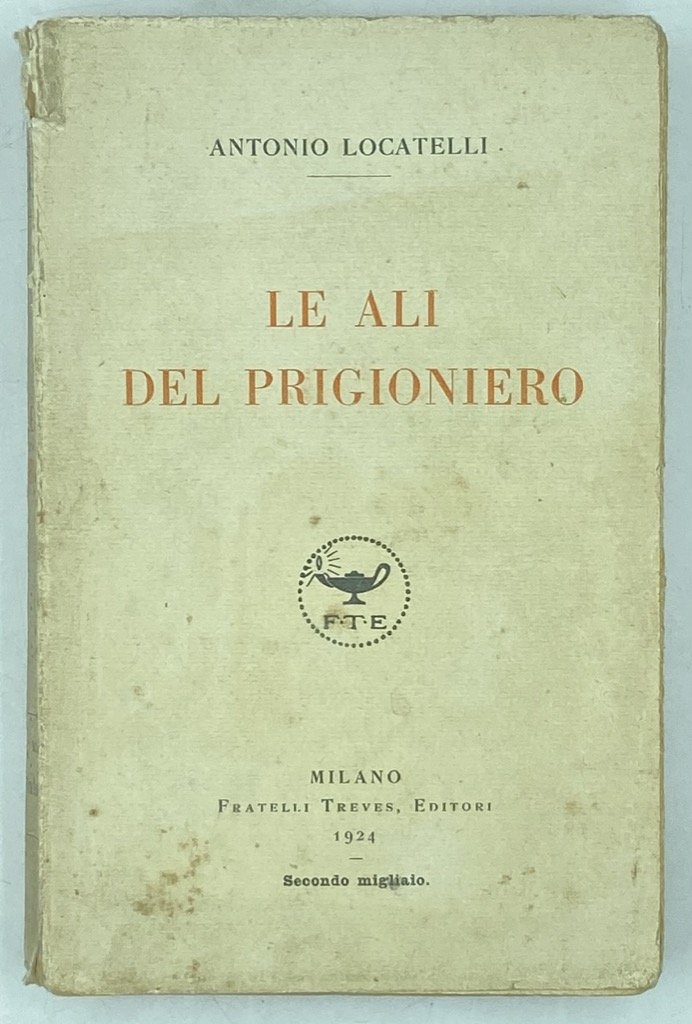 Brossura editoriale a stampa, cm 19 x 12.5, pp (8) 314 (2), ritratto all’antiporta. Discreto esemplare, segni d'uso sulla brossura e legatura un po' allentata nei primi fascicoli. Prima edizione, secondo migliaio, di questo racconto autobiografico del celebre aviatore che narra dell’abbattimento nel 1918, la cattura e prigionia nel campo di Sigmundsherberg, e la rocambolesca fuga. Pluridecorato pilota durante la Grande Guerra, Locatelli fu nel volo su Vienna con Gabriele D’Annunzio, che favorì la pubblicazione di questo suo libro e ne onorò, dopo la morte trovata come volontario in Etiopia, la memoria al Vittoriale. Boffito I, p. 252.