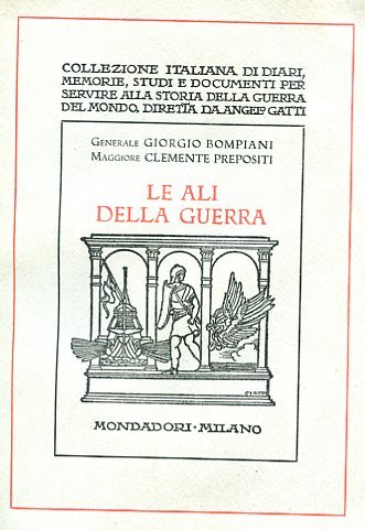 In-8°, pp. 433, (3), brossura editoriale con titolo e filetti in rosso e in nero e vignetta di Cisari. Perfetto esemplare in barbe. Prima edizione, nella tiratura di testa numerata di soli 300 esemplari su carta a mano delle cartiere Miliani di Fabriano (n° 44). Storia dell'aeronautica nella Grande Guerra. Collezione italiana di diari, memorie, studi e documenti per servire alla storia della guerra del mondo, diretta da Angelo Gatti.Boffito, Primo Supplemento, p. 114.