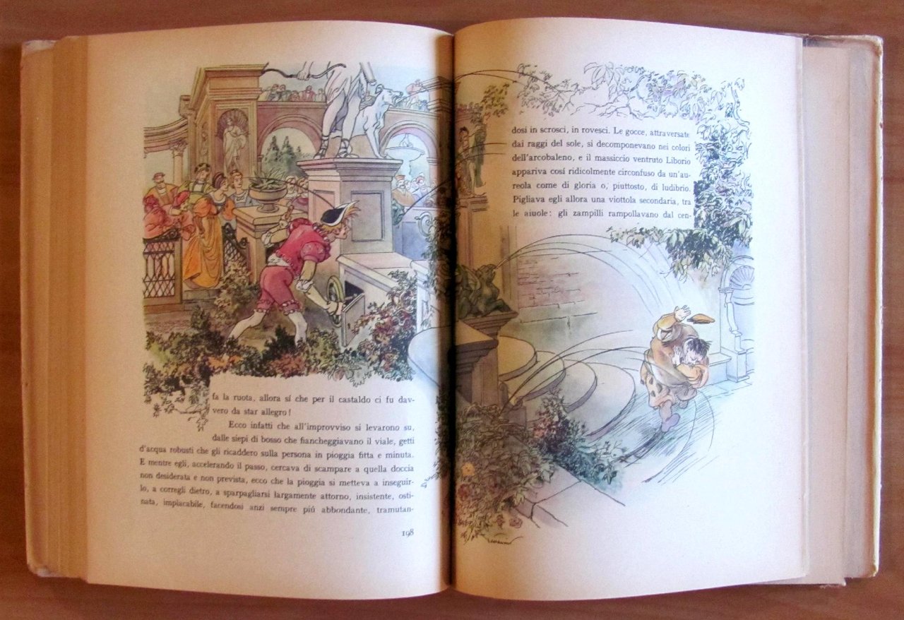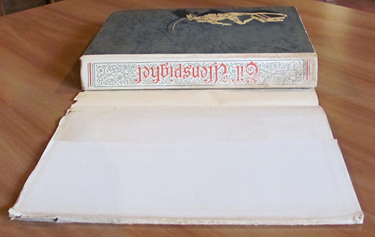 Belle illustrazioni in tricromia e a colori a quasi tutte le pagine, anche a doppia pagina, di Gustavino. Editore Principato - Milano, s.d. anni 1940. Cartonato editoriale illustrato con dorso in tela originale con fregi e titoli in verde e rosso. Sovraccoperta originale con piccoli rinforzi interni e lievi barbe ai margini. I soli margini alto e basso delle copertine presentano delle lievi abrasioni da scaffale. Dedica di vecchia appartenenza in antiporta. 19,5x26; pp.295. BUONISSIMO STATO , Molto buono (Very Good)