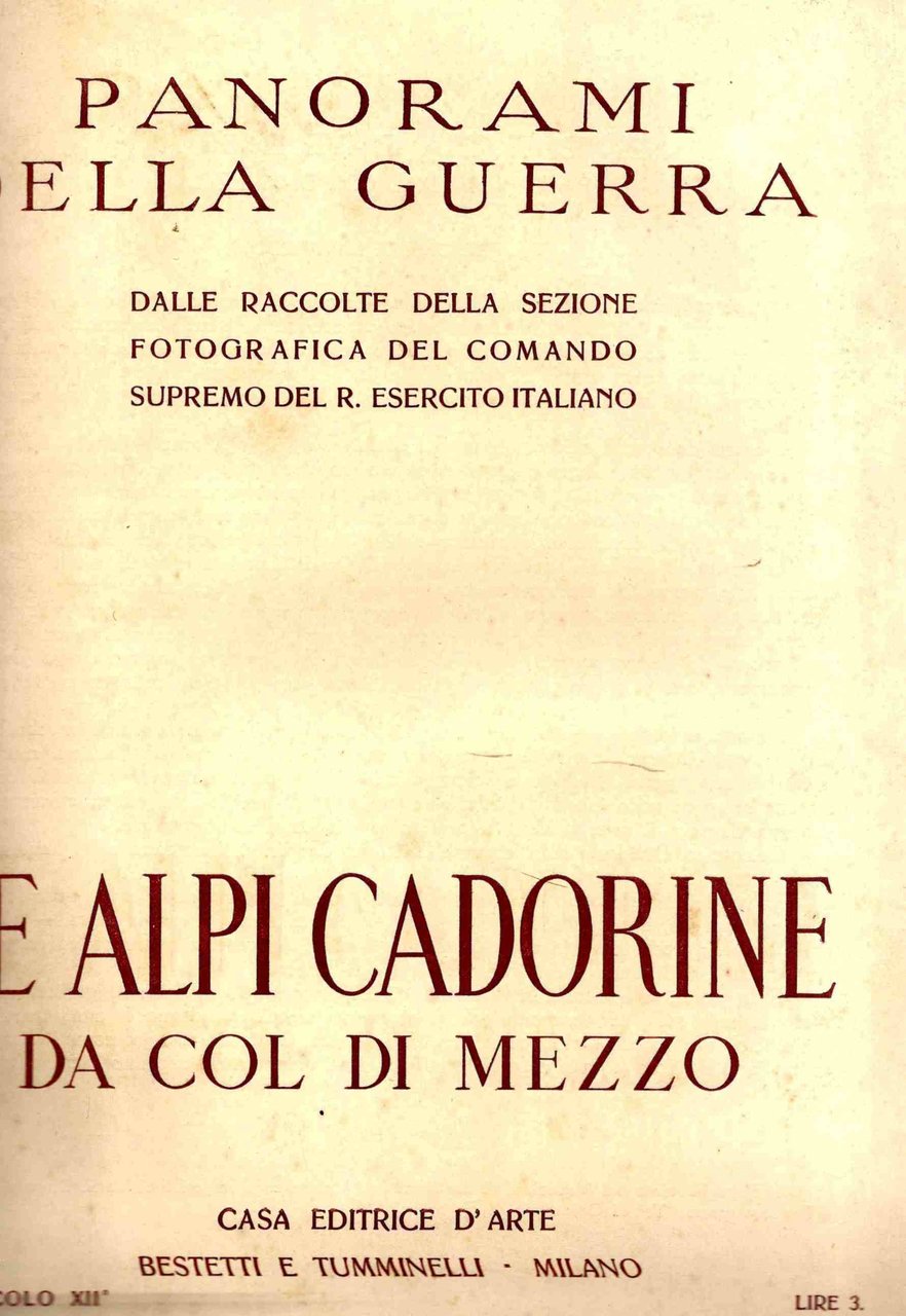Le Alpi cadorine da Col di Mezzo. Panorami di Guerra. Dalla raccolta della Sezione Fotografica del Comando Supremo del R. Esercito italiano