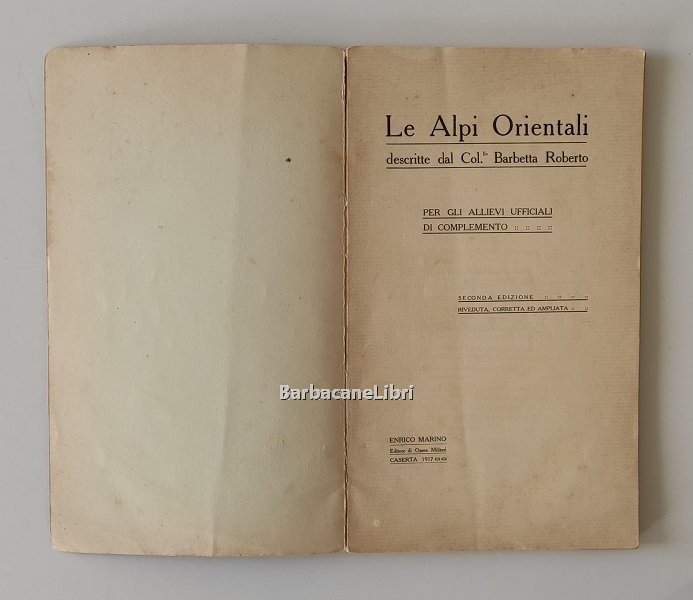Le Alpi Orientali. Descritte dal Colonn. Barbetta Roberto per gli allievi ufficiali di complemento