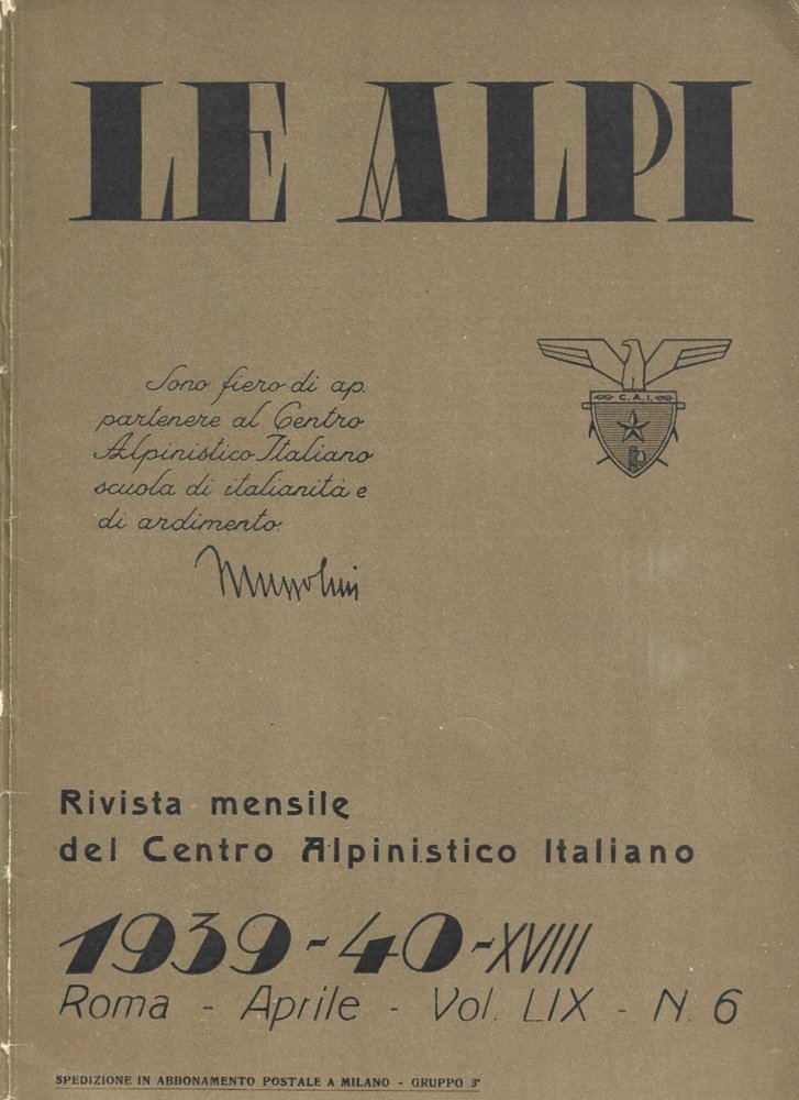 Le Alpi. Rivista mensile del Centro Alpinistico Italiano. 1939-40. Vol. LIX n. 6, aprile
