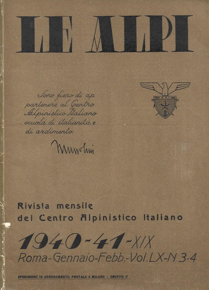 Le Alpi. Rivista mensile del Centro Alpinistico Italiano. 1940-41. Vol. LX n. 3-4, gennaio-febbraio