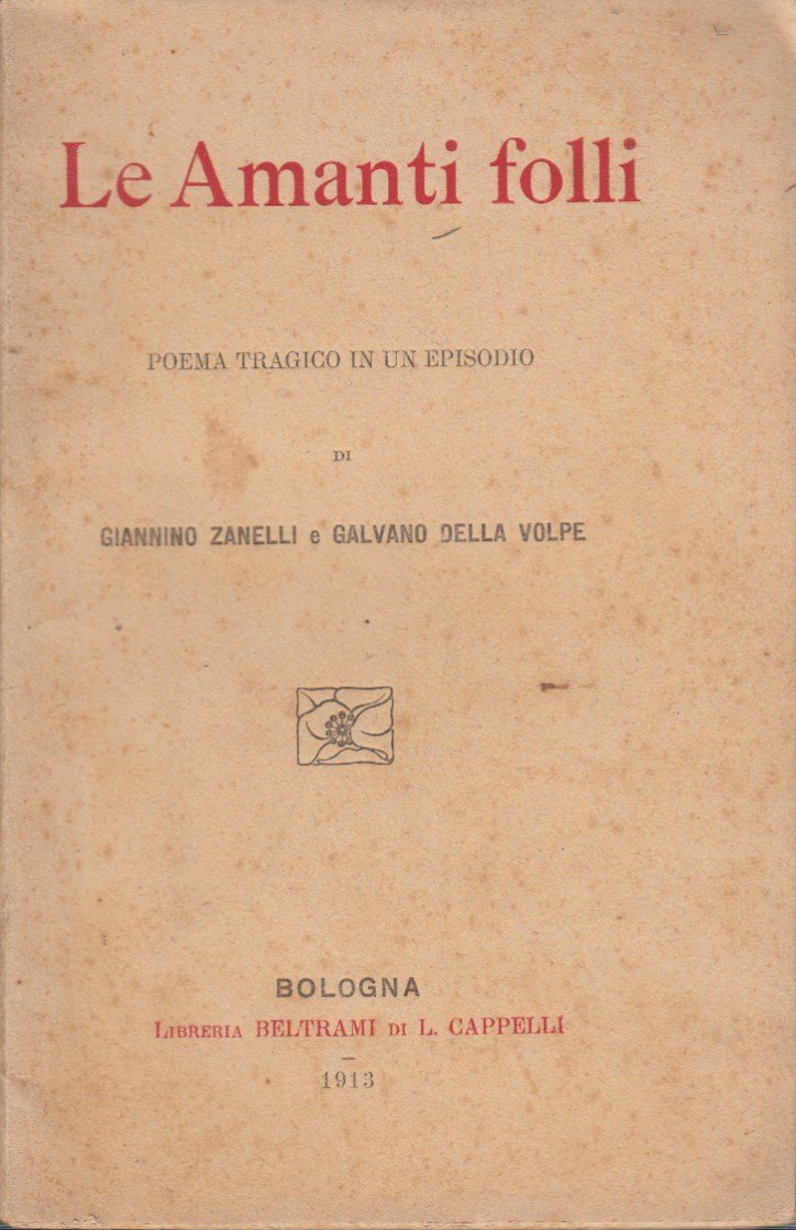 In-16 (Cm 19 x 12,5), pp. 47, brossura editoriale. Bella ed estesa dedica con autografo di Gaetano Della Volpe. Lieve ingiallitura della brossura. OTTIMO - Rara opera giovanile (6 copie censite in Iccu), scritta a quattro mani, del filosofo emiliano Galvano Della Volpe. Curioso notare come nella prefazione gli autori si dichiarassero "Giovanissimi, freschi di una variata cultura con elemento prevalentemente d'Annunziano" e questo anche alla luce della successiva appartenenza politica del Della Volpe il quale aderì nel 1944 al Partito Comunista contribuendo allo sviluppo del pensiero di area marxista. Lucio Colletti fu senz'altro ils uo allievo più noto.