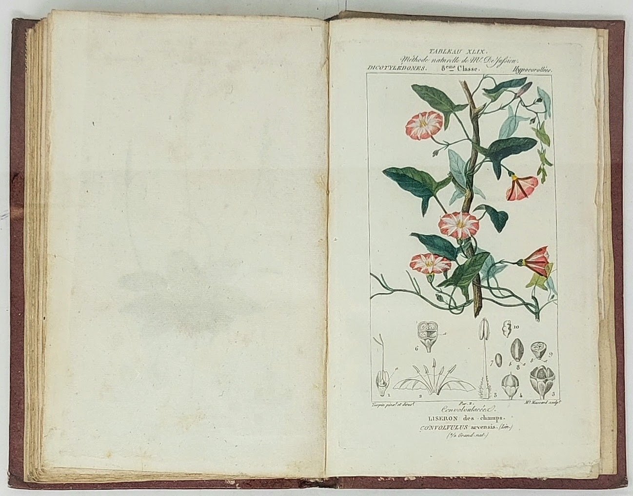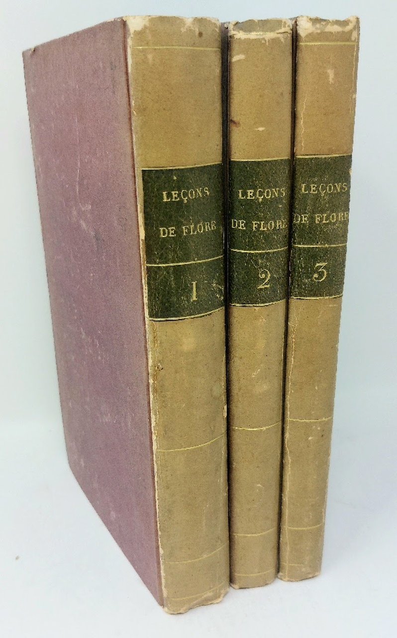 >3 vol. in-8, pp. (2), 278, (6) e 36 tavole a colori f.t. - pp. 174, 3 e 20 tav. colorate. f.t. - pp. 199, 8 tavole a colori e 2 b/n, ripiegate f.t.. Legatura edit. cartonato rigido, tit. oro su tassello al dorso. Prima edizione di questa importante opera di botanica, che venne impressa in quattro diversi formati: in-4, in-8 (tiratura riservata ai sottoscrittori. Il presente esempl. appartiene a qs. tiratura); ed in-folio, una tiratura limitata di 10 copie. Per i tre formati vennero usati i medesimi caratteri di stampa. Poiret scrisse i primi due volumi, mentre Turpin si dedicò al terzo, che ha come sottotitolo "Essai d'une iconographie élémentaire et philosophique des végétaux". Turpin fu uno dei migliori disegnatori di botanica del suo tempo e le 66 tav. (delle quali 64 a col.), furono tutte eseguite da lui. Fu notevolmente influenzato da Van Spaëndonck e Redouté. L'incontro con Poiret, avvenuto a S. Domingo, suscitò in Turpin un forte interesse verso la botanica e la storia naturale; insieme, collaborarono ad alcune tra le più importanti pubblicazioni di botanica dell'800, in particolare a quelle di Humboldt, Bompland e Kunth. Bell'esemplare con qualche usuale arrossatura della carta. Great Flower Books, p. 71; Dunthorne 227; Stafleu TL2 8115. Pritzel, 7234.