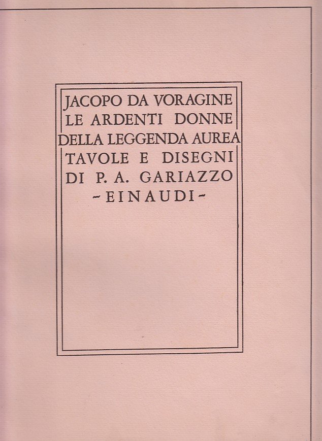 In-4 (Cm 32 x 25), pp. 54, brossura editoriale con sovraccoperta. Illustrato da 12 tavole e 21 disegni di Pier Antonio Gariazzo. Copia numerata, 274, stampata su carta Ingres rosa delle cartiere Milani di Fabriano. Tavole eseguire nello Stabilimento Arti Grafiche Manzoni di Torino. Pieghetta alla brossura posteriore. OTTIMO