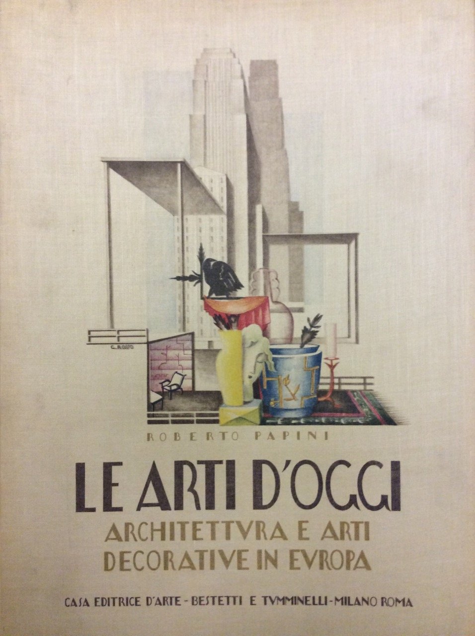 In-4 gr. (mm. 330x247), tela edit. a colori con l'allegoria delle Arti, firmata da G. Rosso, pp. 22,(10), con un ricchissimo apparato iconografico di 808 illustrazioni (alcune a colori) in 435 tavole fuori testo Interessante panorama dell'arte del primo Novecento relativo a: architetture, interni e mobili, metalli, ceramiche, vetri, merletti, ricami, tessuti, carte stampate e legature di libri. Ben conservato.